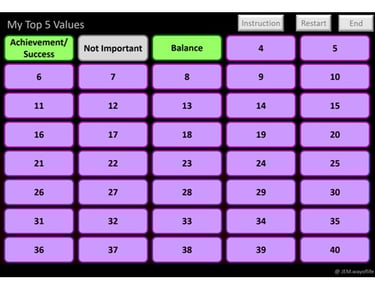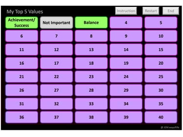 This tool offers various applications tailored for distinct focuses: Top Values - Designed for individuals to identify the most important values that they hold. Core Skills - Created to assist individuals in recognizing their proficient skills.