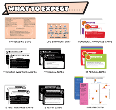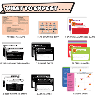 A deck of conversation cards suitable for experiential learning facilitation and restorative or mental wellness conversations. The deck includes awareness cards that facilitate self-expression and question cards offering a range of effective inquiries to deepen conversations. A comprehensive resource that explores themes such as "what are you thinking?", "how are you feeling?", and "what are you doing or what do you need?". This research-based tool can be used when engaging in sharing, coaching, mentoring, or simply reflecting on your thoughts, feelings, and behaviors.